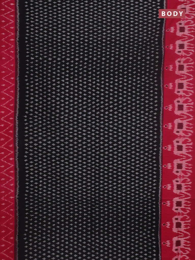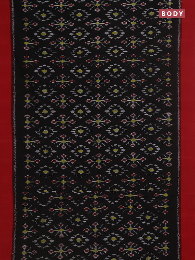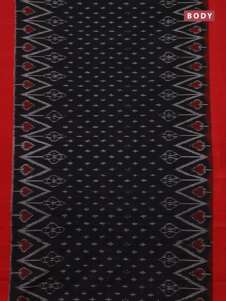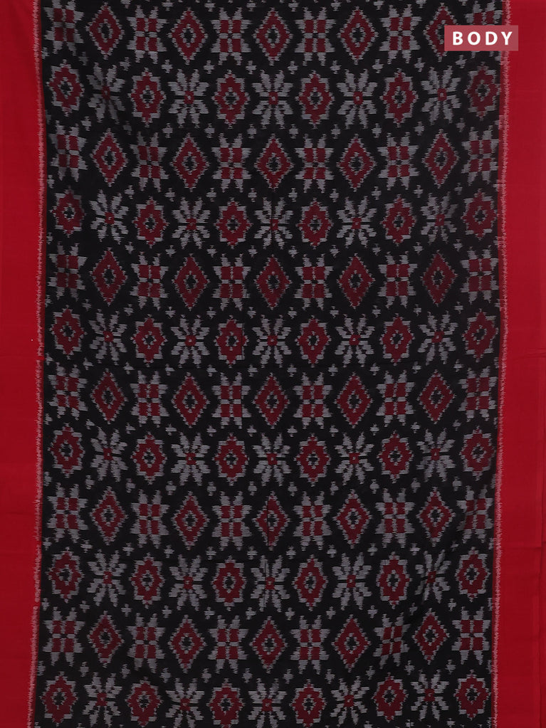 Ikat cotton saree black and red with allover ikat butta weaves and simple border