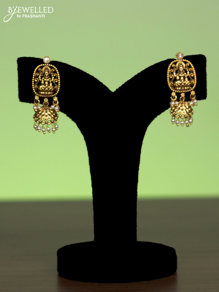Antique choker lakshmi design with cz stones and pearl & golden beads hanging