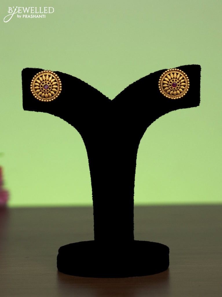 Antique choker floral design with pink kemp & cz stones and pearl & golden beads hanging without earrings