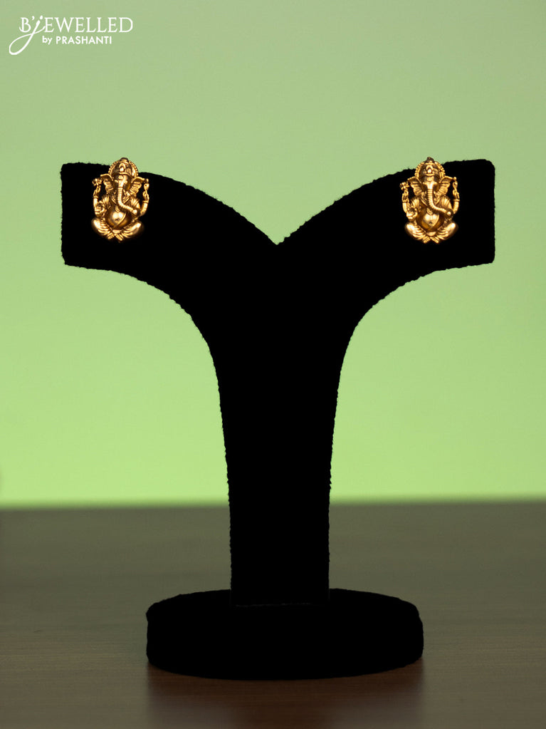 Antique choker chandbali design with kemp & cz stones golden beads and pearl hanging without earrings
