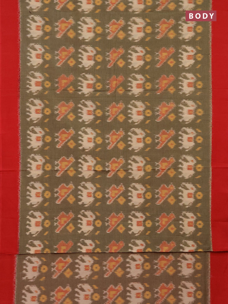 Ikat cotton saree cream and green red with allover ikat butta weaves and long ikat style border