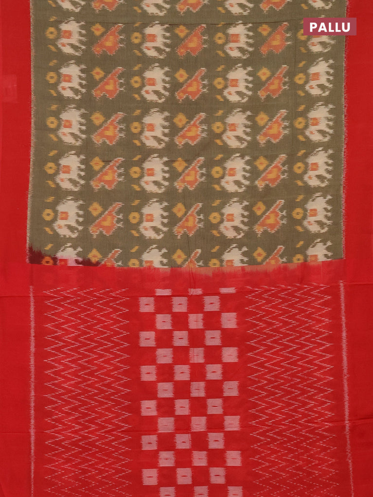 Ikat cotton saree dark sandal and teal green with allover ikat butta weaves and long ikat style border
