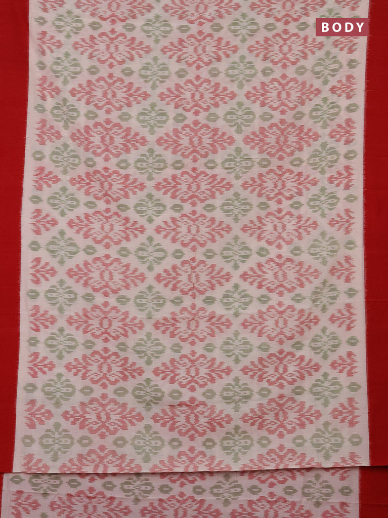 Ikat cotton saree cream and red with allover ikat butta weaves and long ikat style border