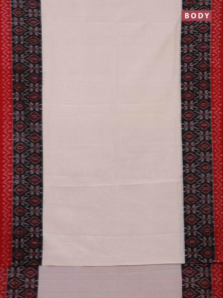 Ikat cotton saree off white and black red with plain body and long ikat style border