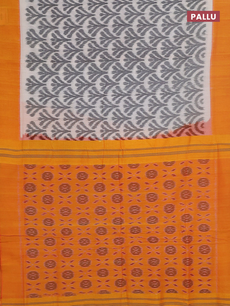 Ikat cotton saree off white and mango yellow with allover ikat weaves and simple border