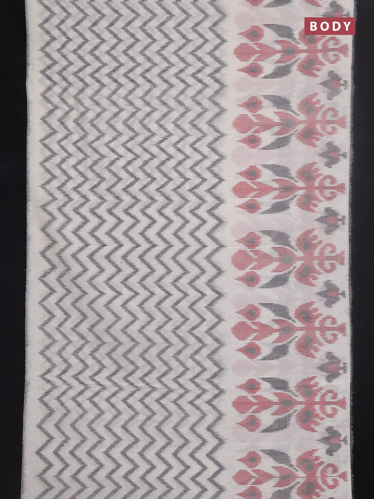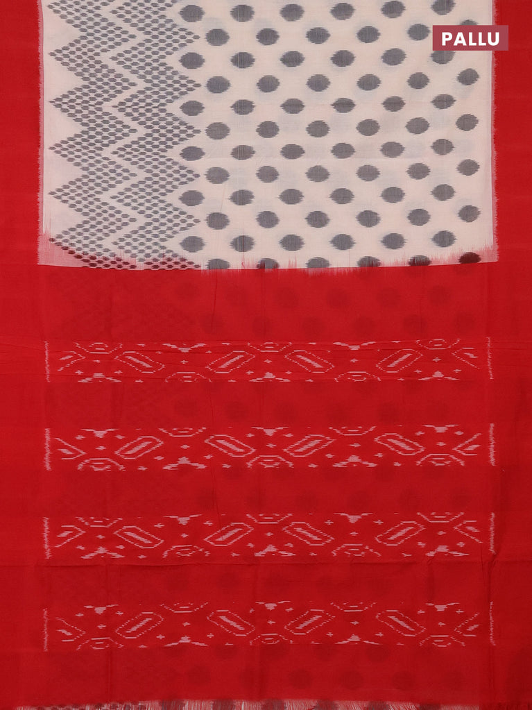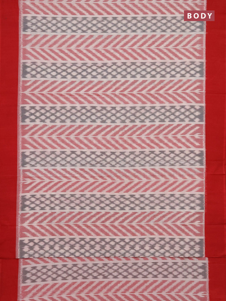 Ikat cotton saree off white grey and red with allover ikat weaves and simple border