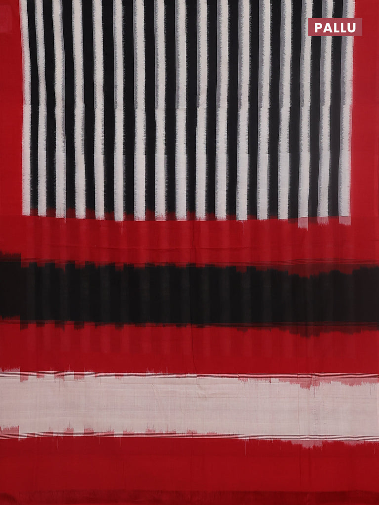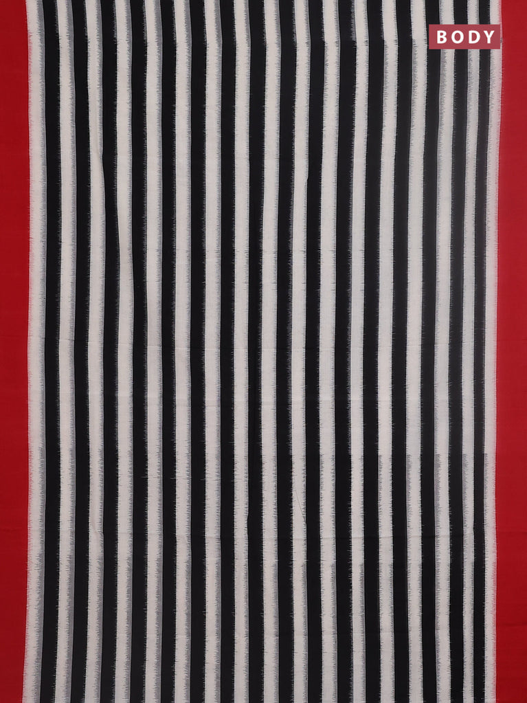 Ikat cotton saree off white black and red with stripes pattern and simple border