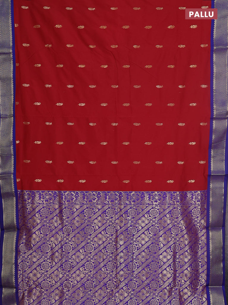 10 yards salem silk saree maroon and blue with zari woven buttas and zari woven border