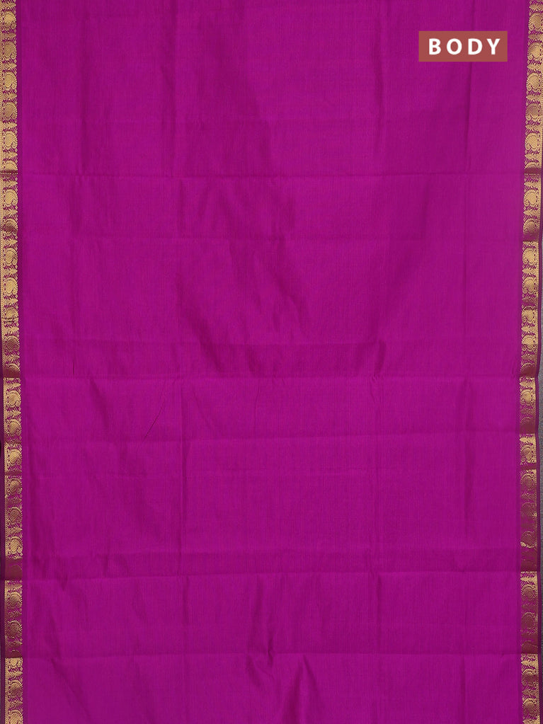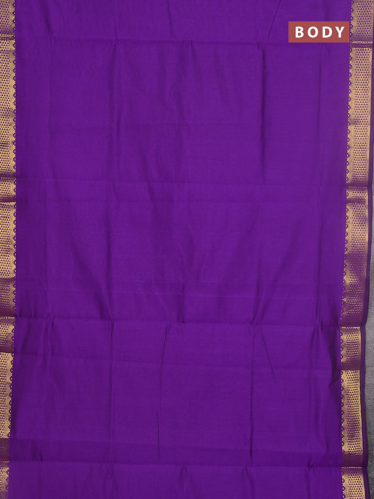 10 yards Poly cotton saree violet and maroon with plain body and rettapet zari woven border
