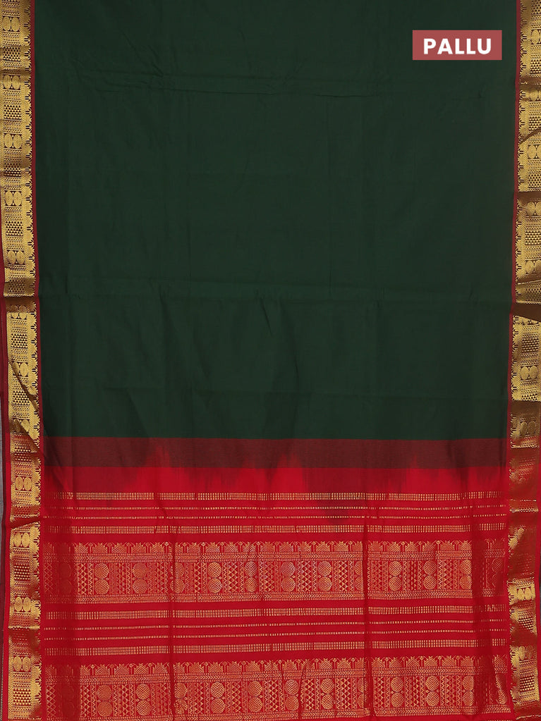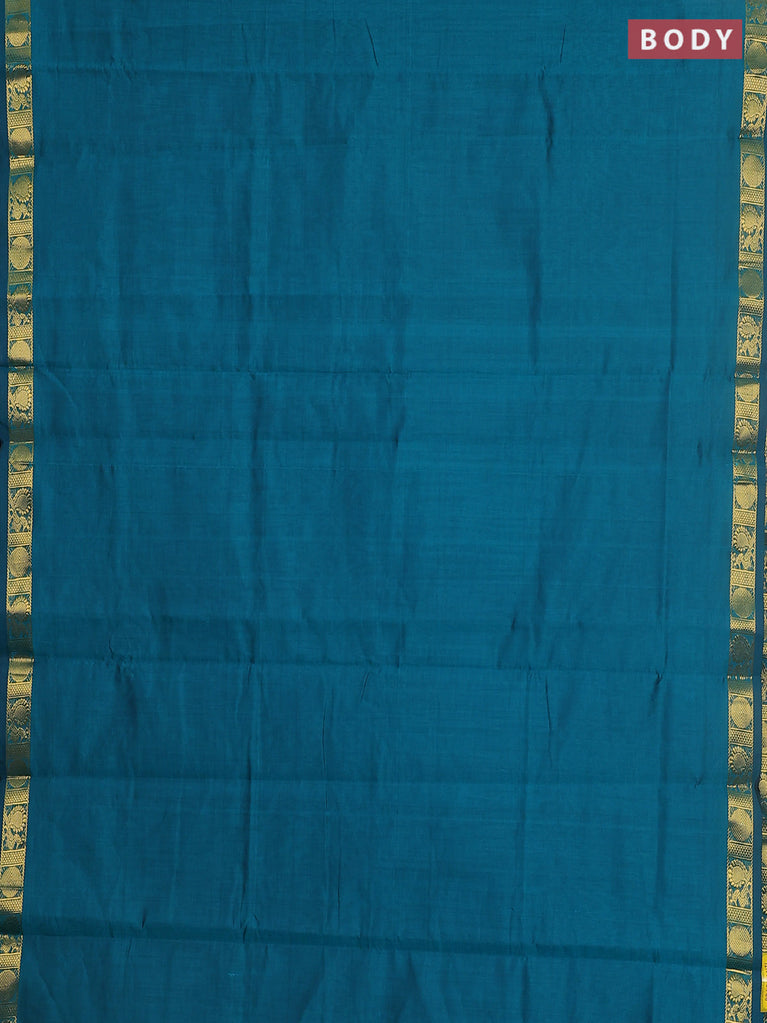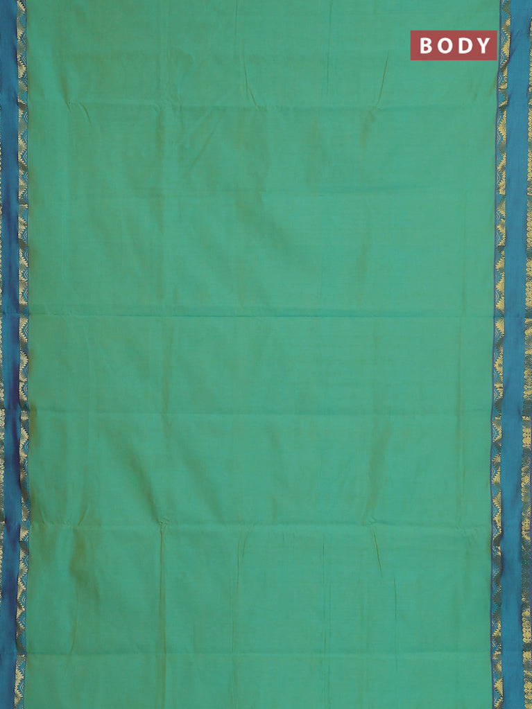 10 yards Poly cotton saree teal green and maroon with plain body and rettapet zari woven border