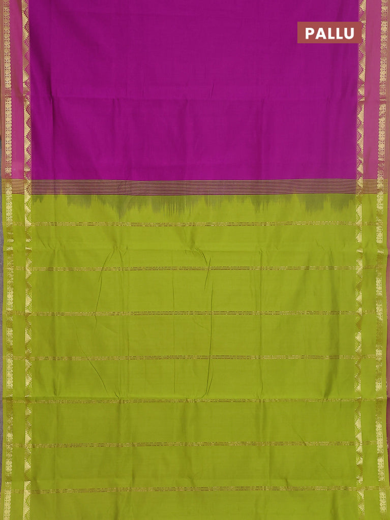 10 yards Poly cotton saree violet and light green with plain body and zari woven border