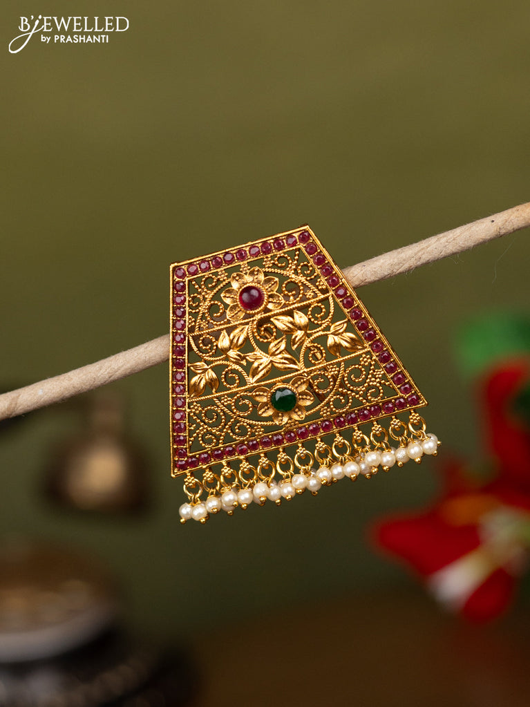 Antique jada billai ganesha design with kemp stones and golden beads hanging