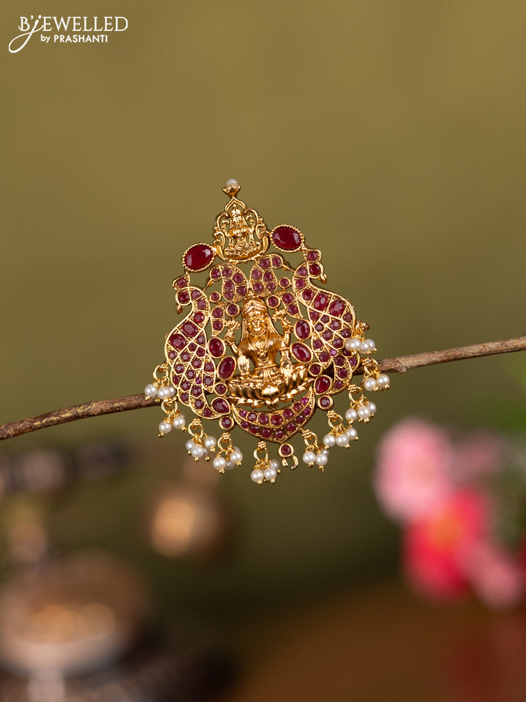 Antique jada billai lakshmi & peacock design with pink kemp stones and golden beads hangings