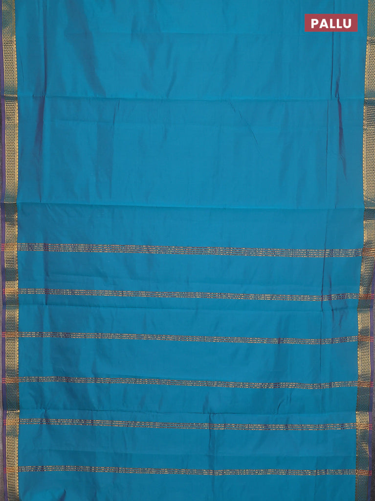 10 Yards silk cotton saree blue and cs blue with plain body and zari woven korvai border