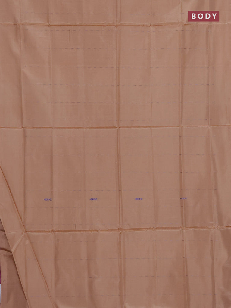 Banana pith saree light pink and rust shade with thread woven buttas in borderless style