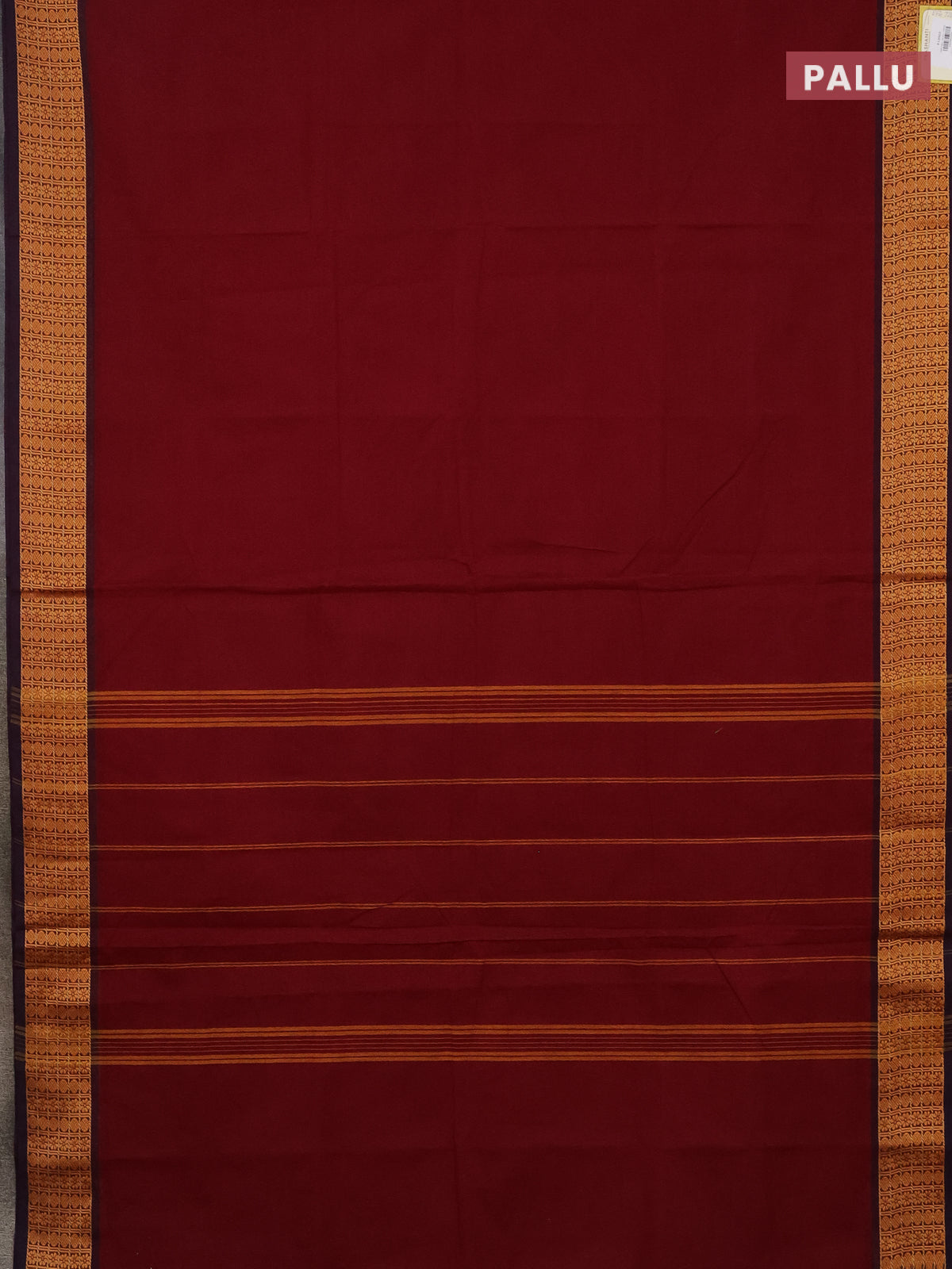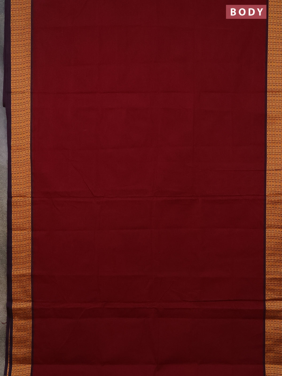 10 Yards chettinad cotton saree deep maroon and wine shade with plain body and thread woven border