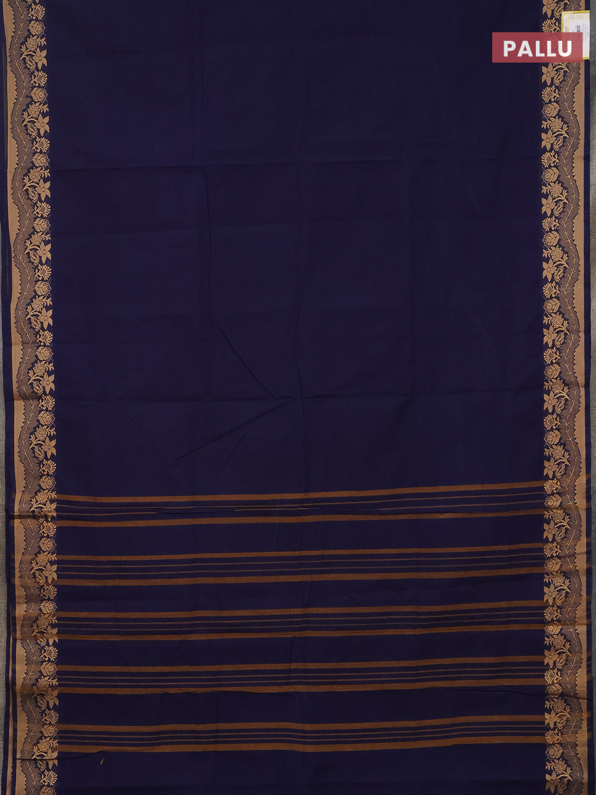 10 Yards chettinad cotton saree navy blue and sandal with plain body and thread woven border