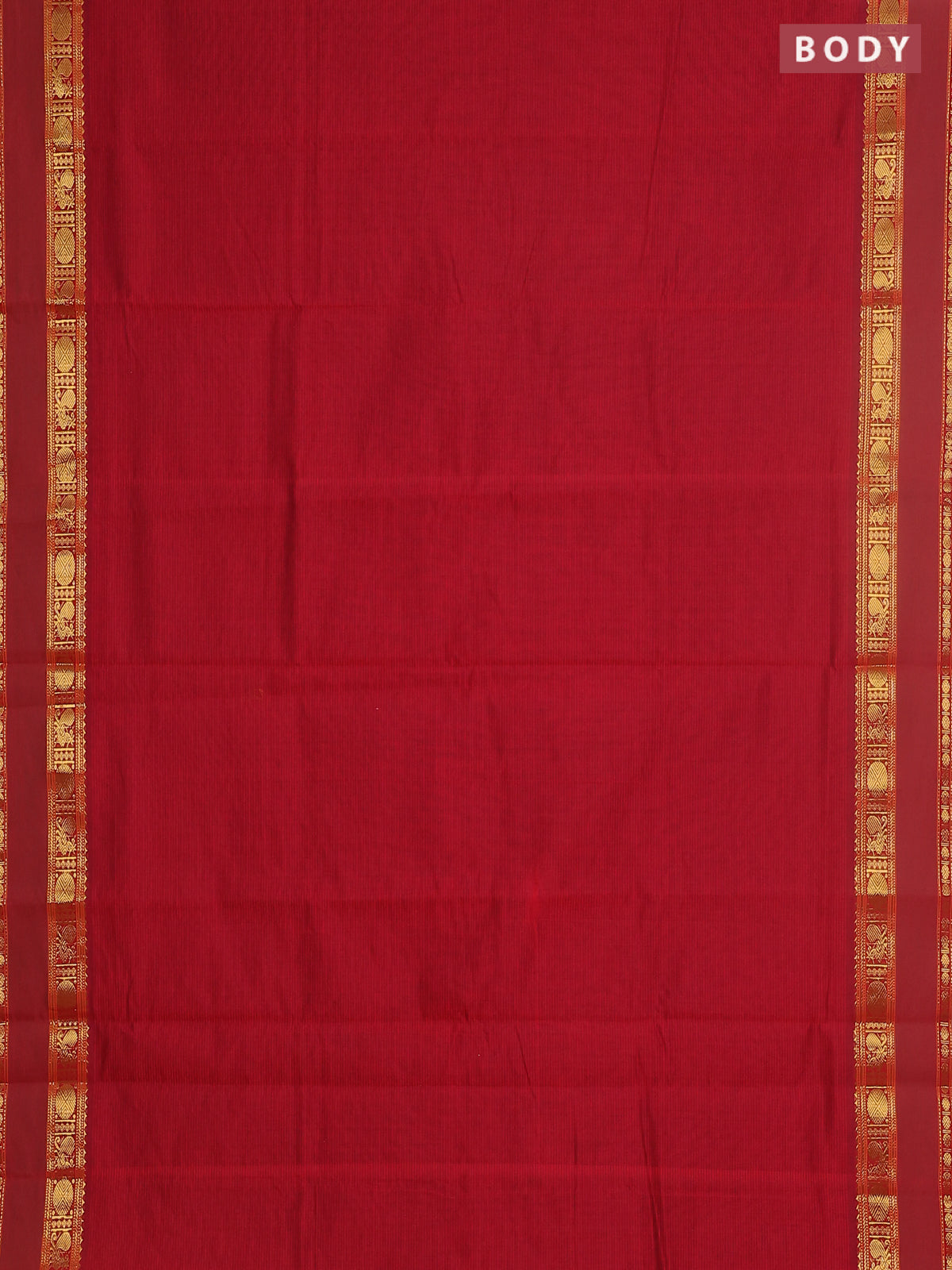 10 yards Poly cotton saree maroon and blue with plain body and rettapet zari woven border