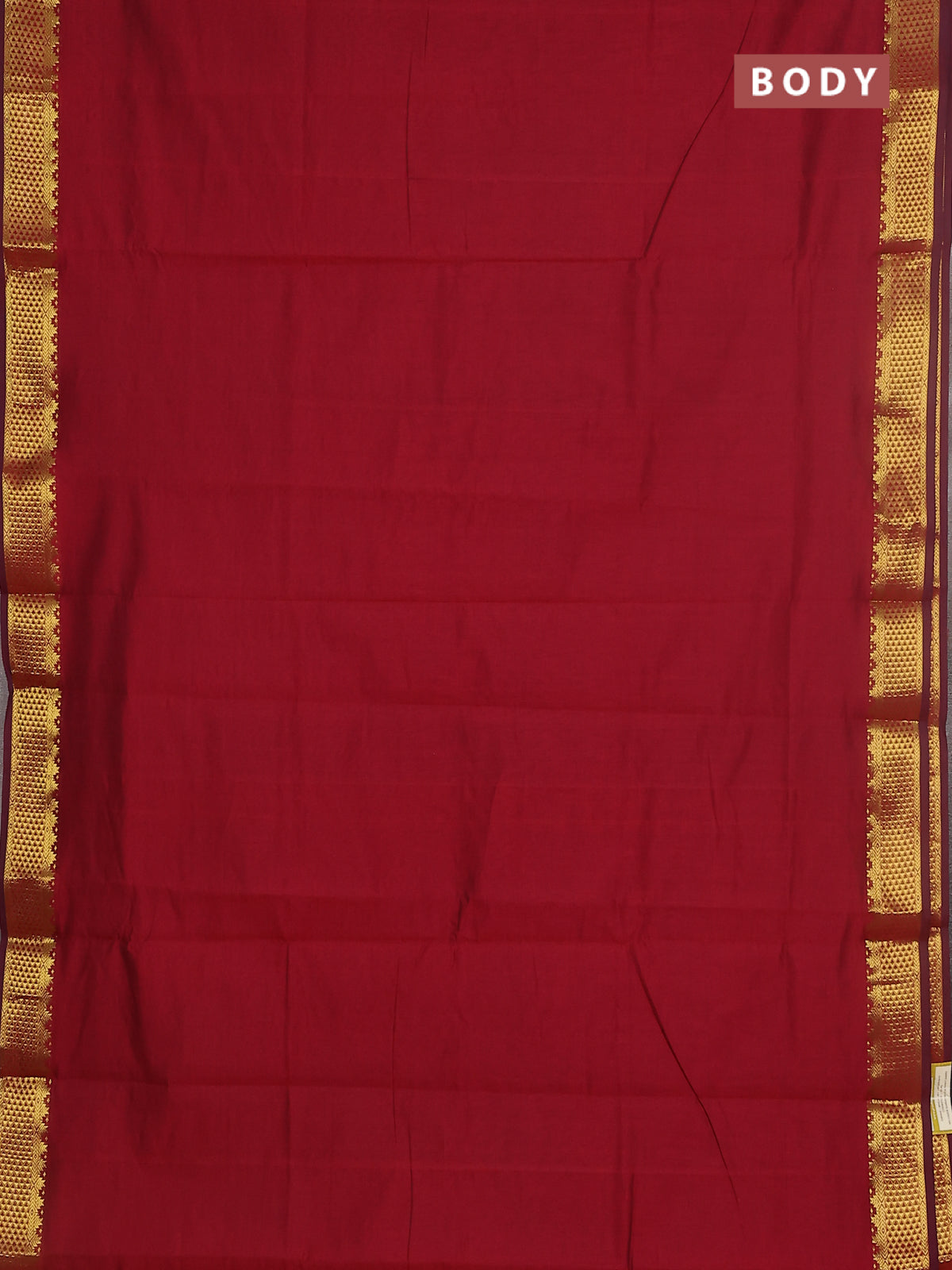 10 yards Poly cotton saree maroon and mehendi green with plain body and zari woven border