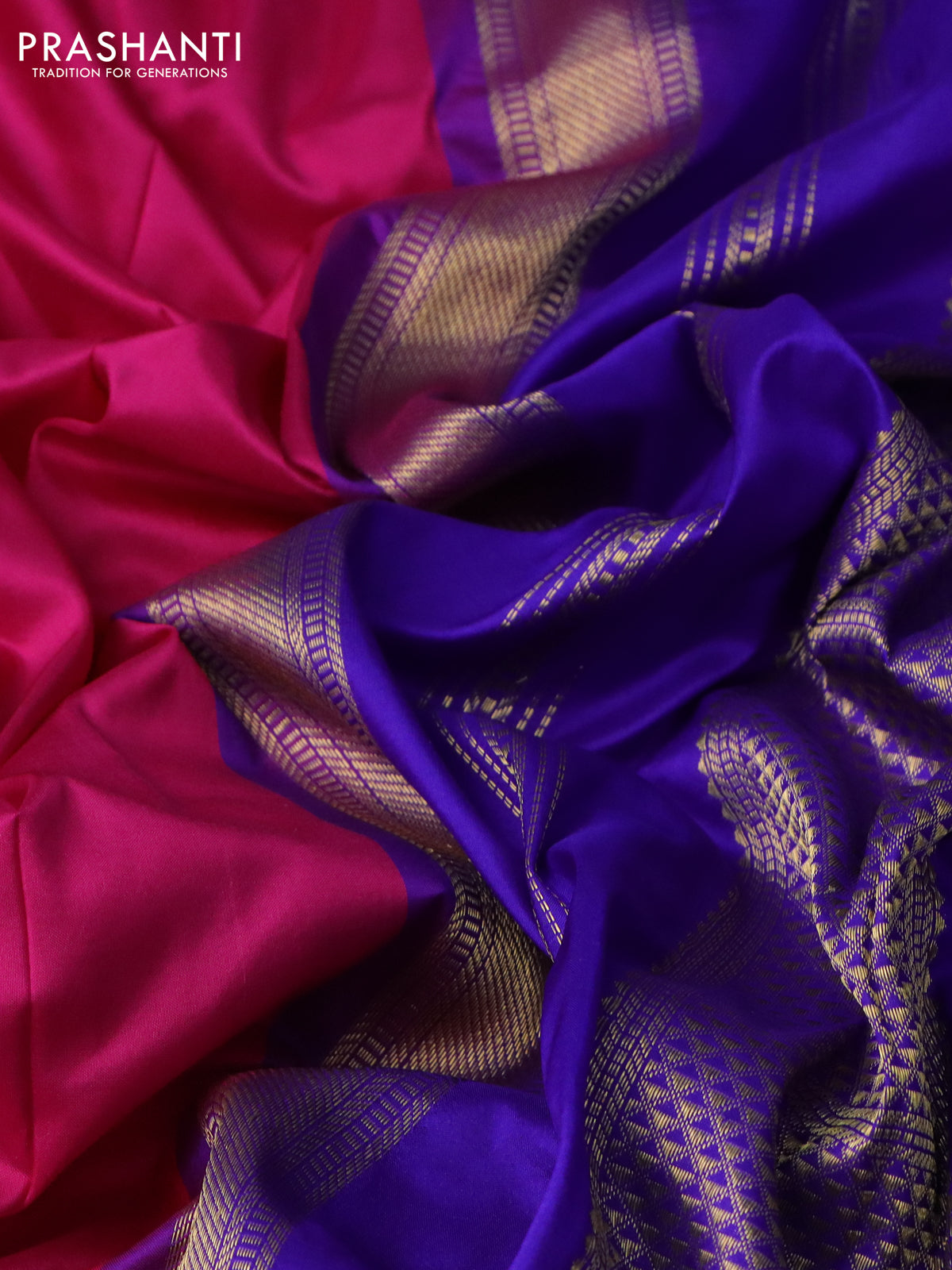 10 Yards silk saree pink and blue with plain body and zari woven border