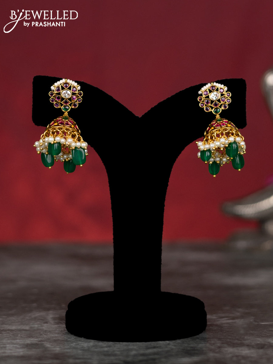 Antique guttapusalu necklace changable pendant with kemp & cz stones and pearl & green beads hangings