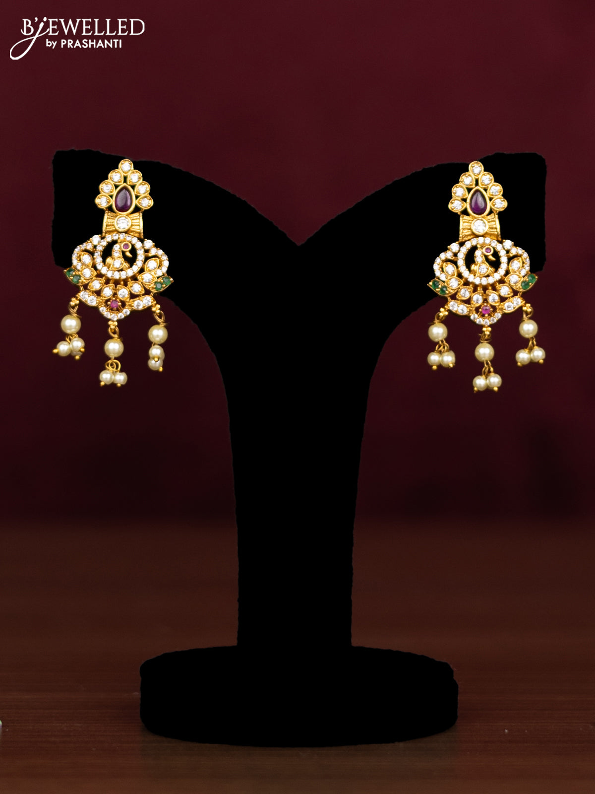 Antique guttapusalu necklace peacock design with kemp & cz stones and pearl hangings