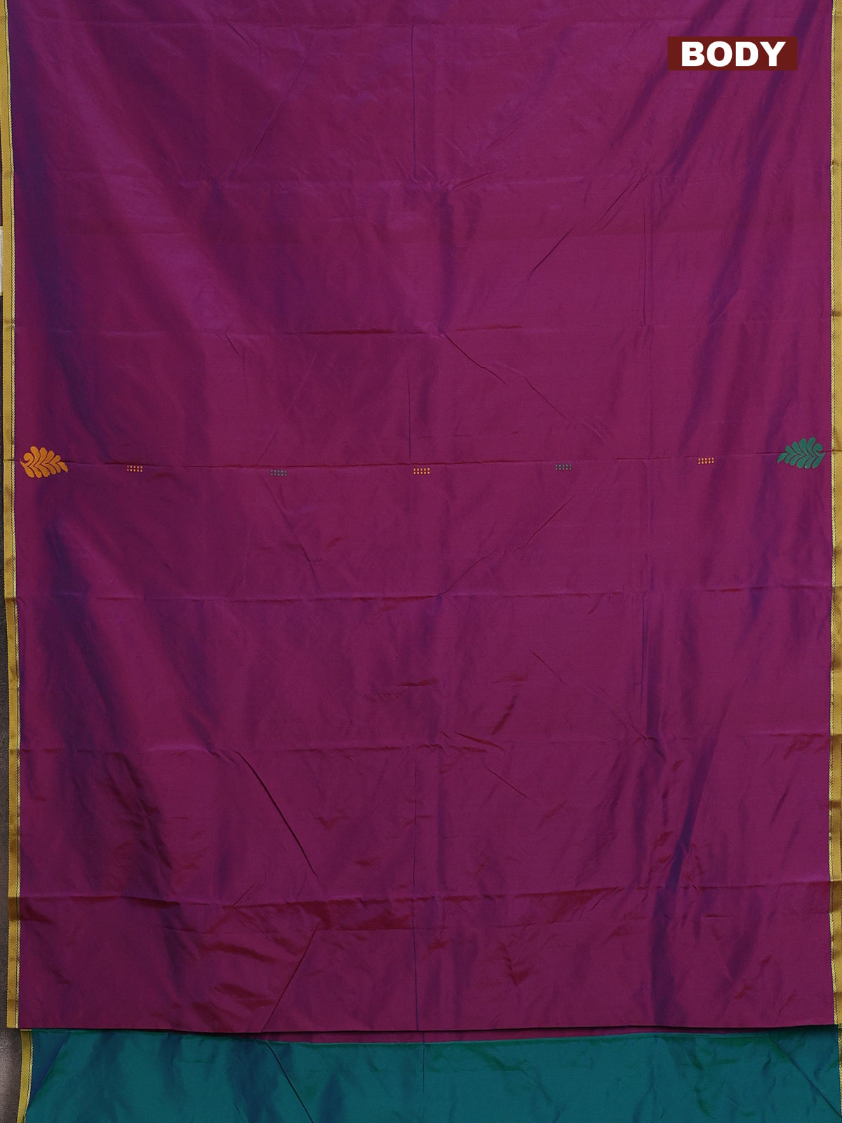 Arani semi silk saree dual shade of maroonish purple and green with thread woven buttas and piping border