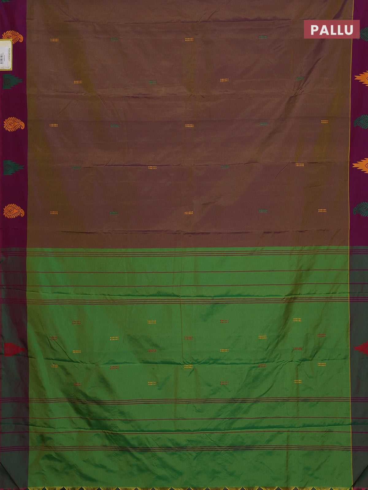 Arani semi silk saree dual shade of sap green and green with thread woven buttas and thread woven butta border