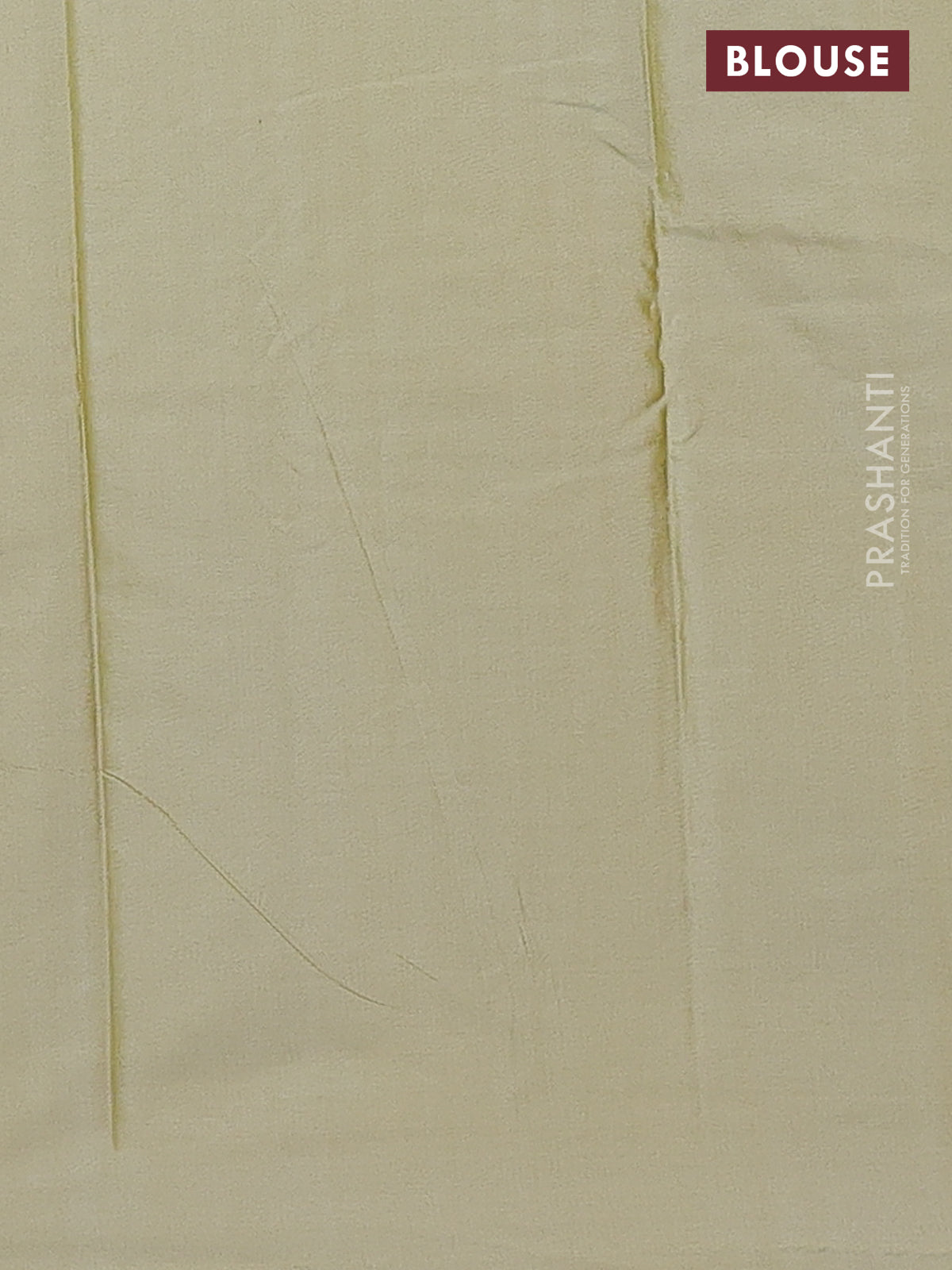 Arani semi silk saree elaichi green with allover copper zari weaves in borderless style