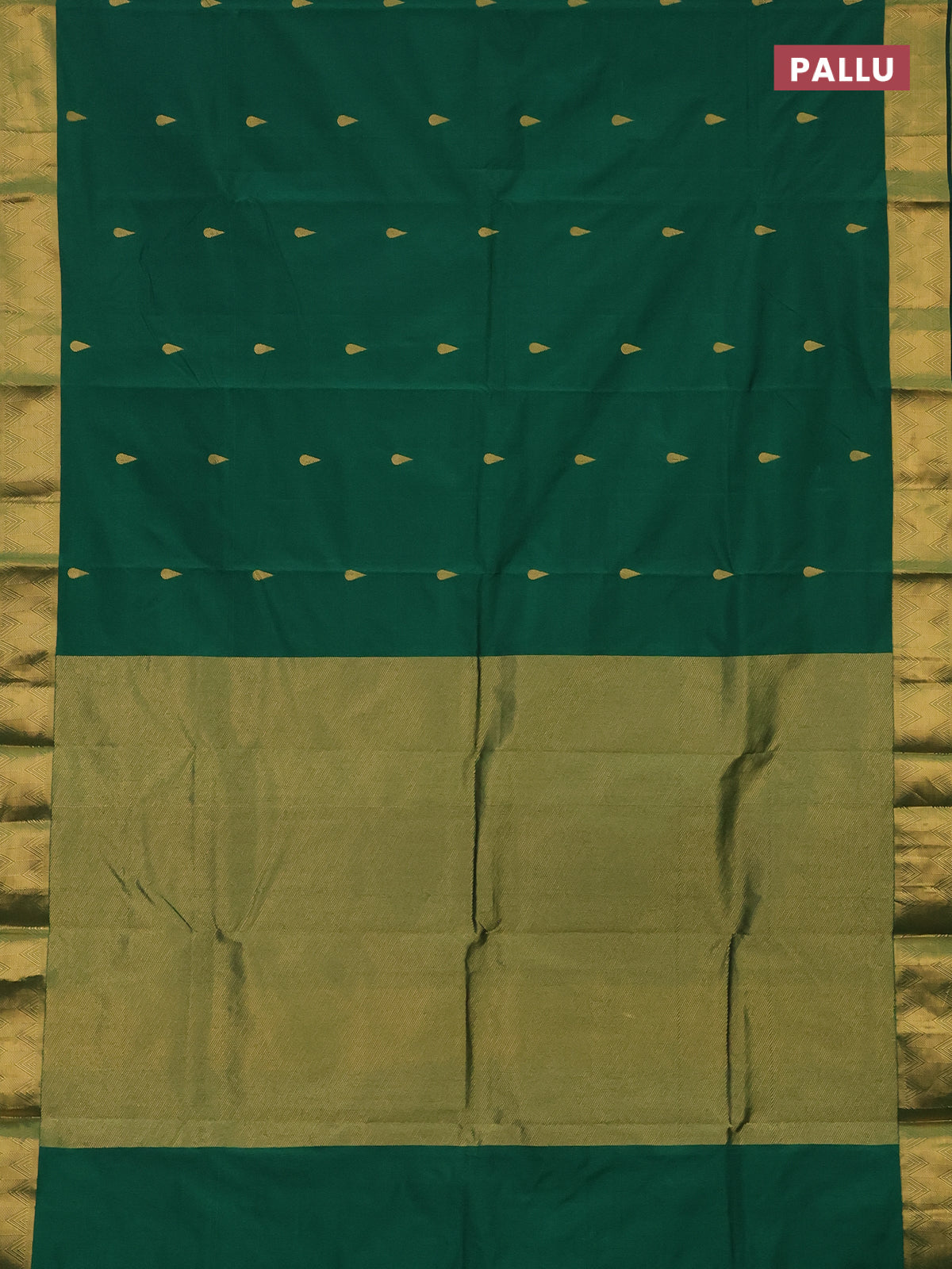Arani semi silk saree green with zari woven thilak buttas and zari woven border