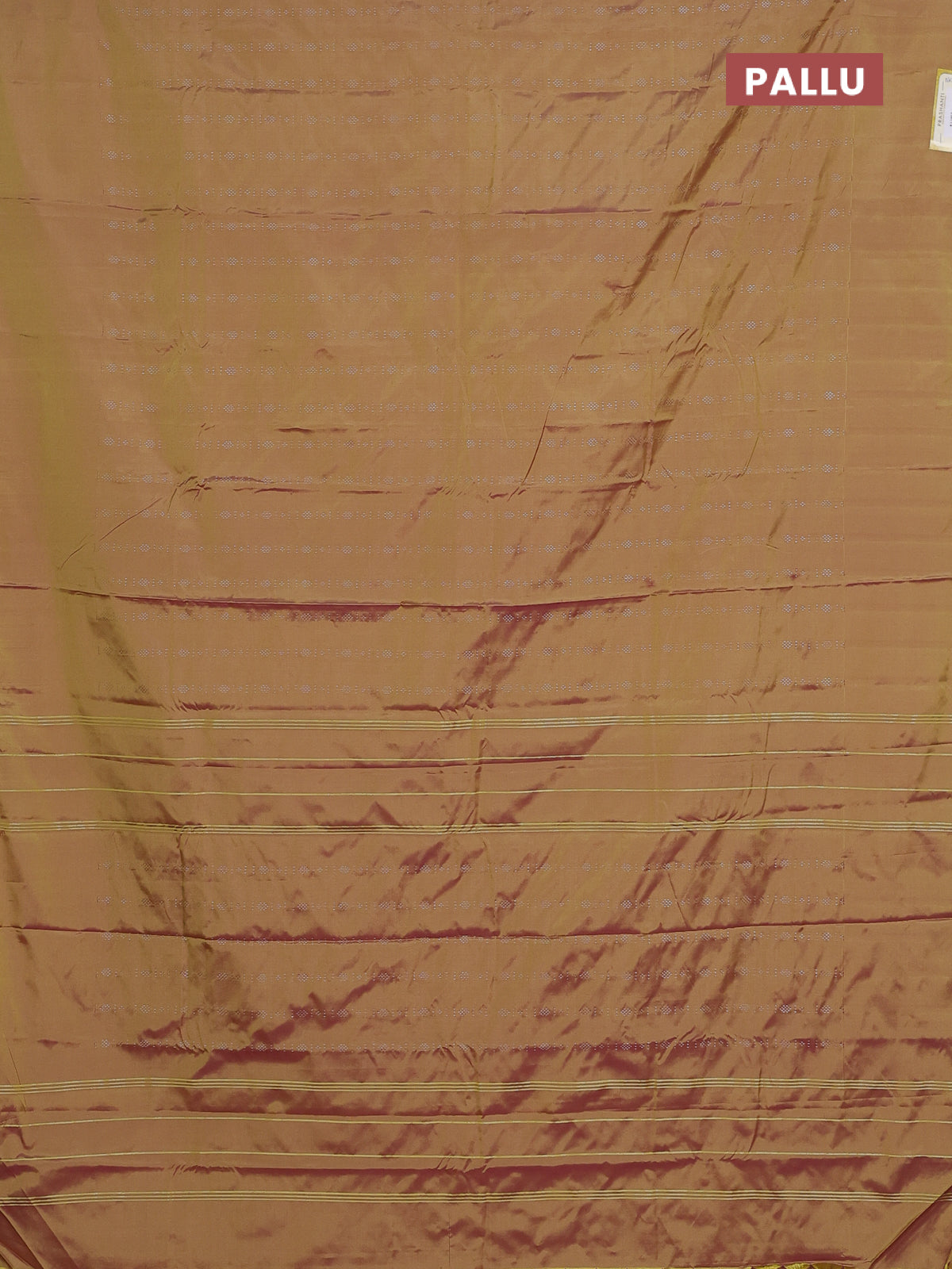 Arani semi silk saree mehendi green with allover silver zari weaves in borderless style