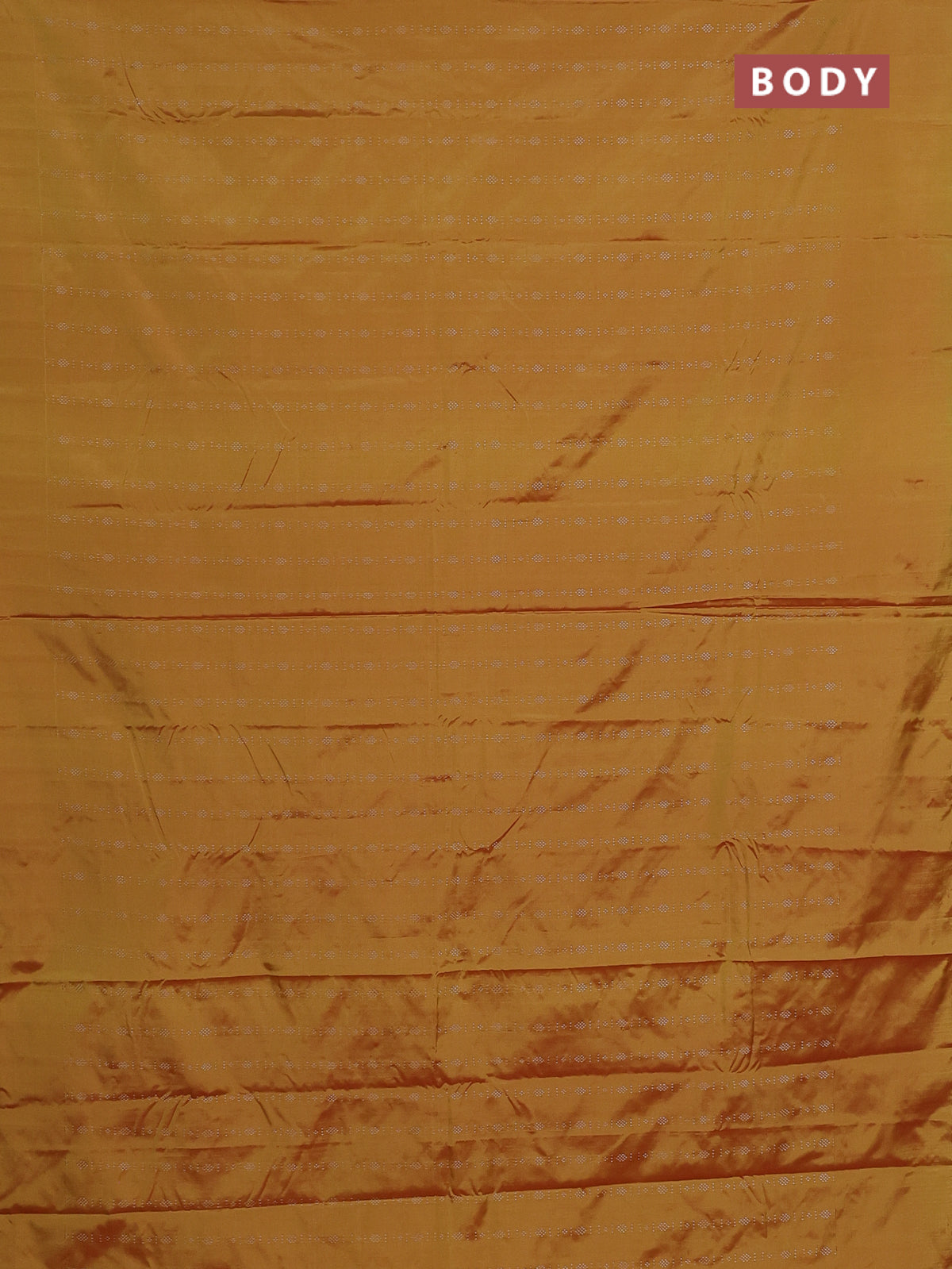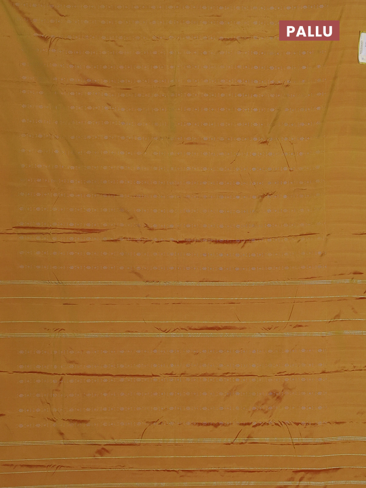 Arani semi silk saree mustard yellow with allover silver zari weaves in borderless style