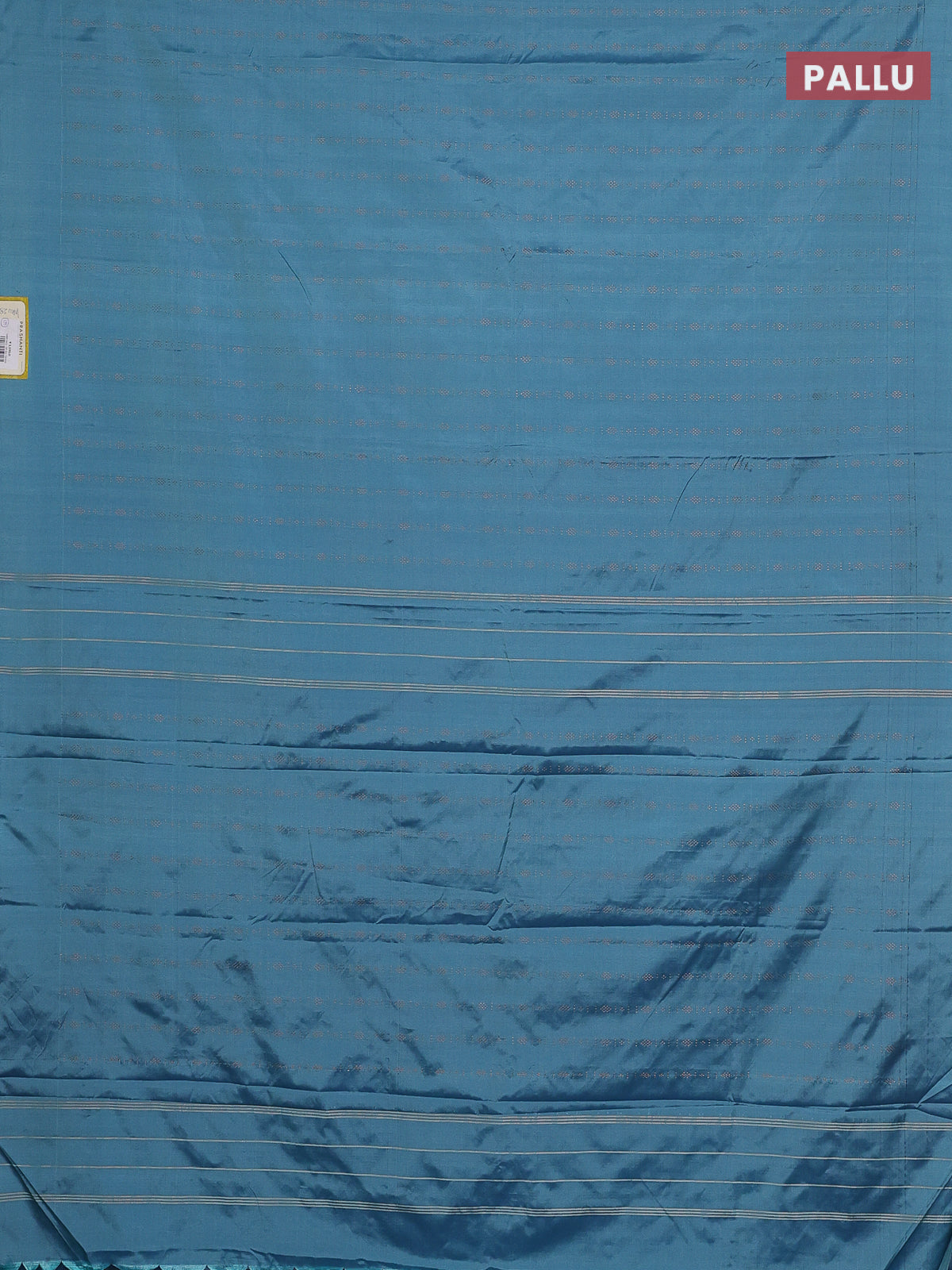 Arani semi silk saree pastel blue with allover copper zari weaves in borderless style