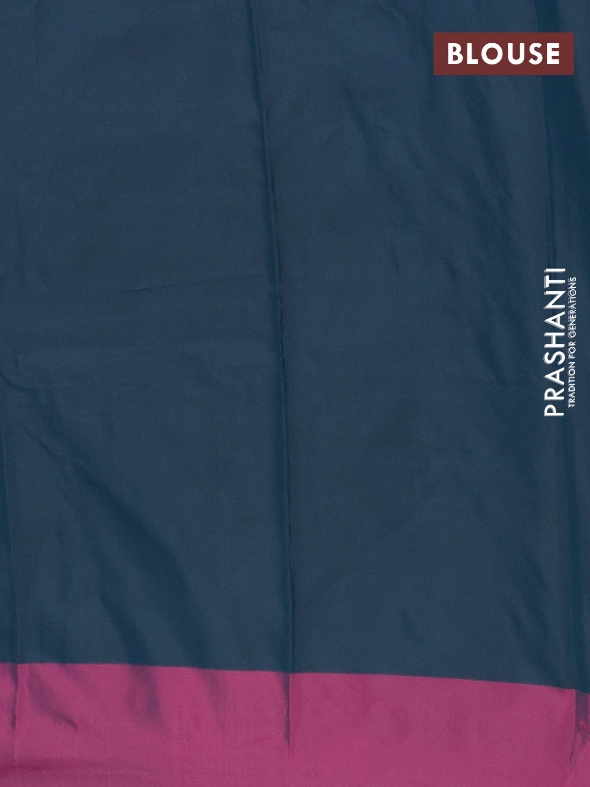 Arani semi silk saree peacock green and magenat pink with allover copper zari checked pattern and copper zari woven simple border