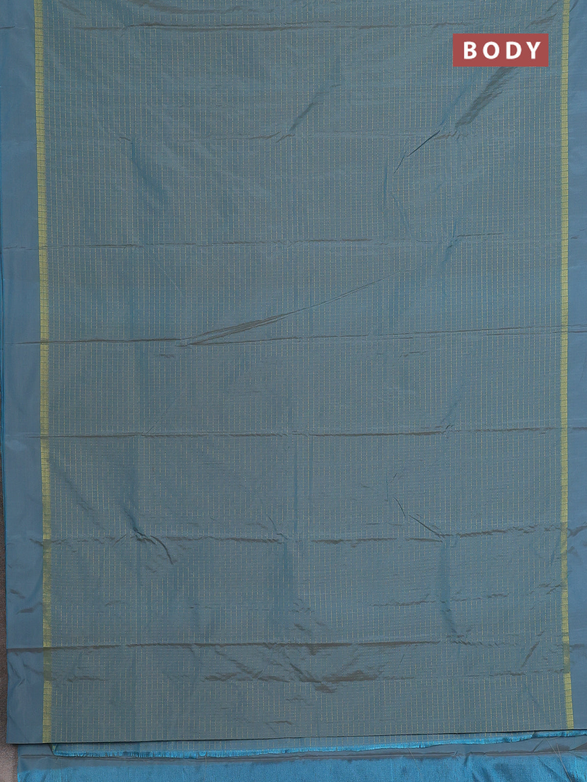 Arani semi silk saree teal blue shade with allover small zari checked pattern and zari woven simple border