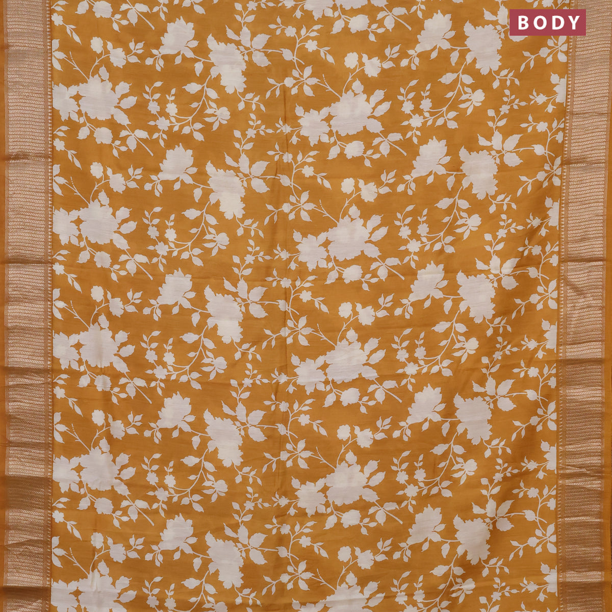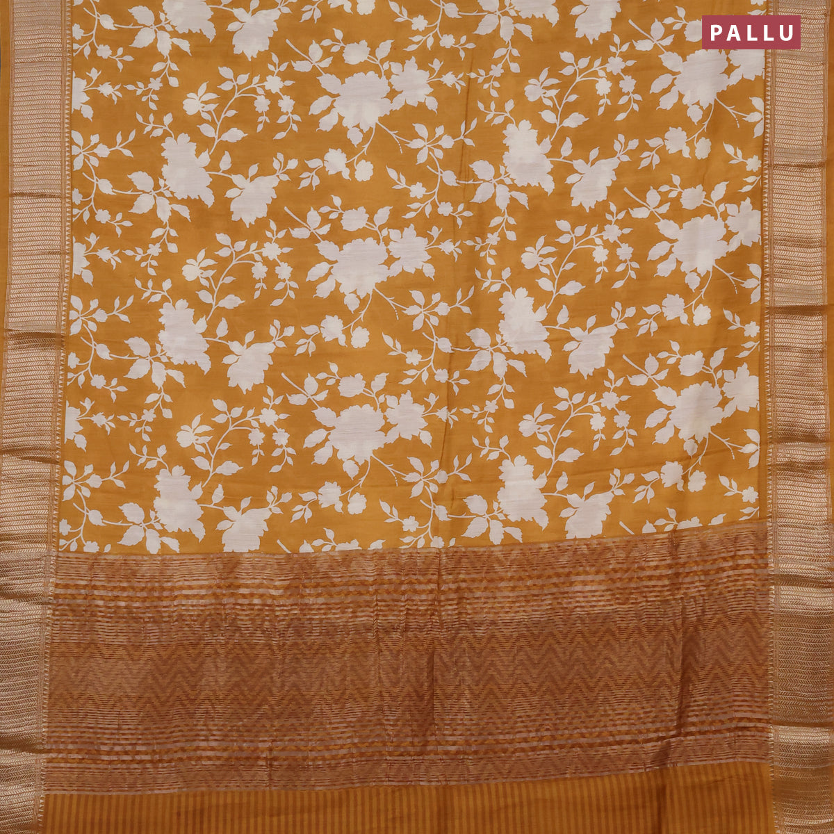 Assam silk saree mustard yellow with allover floral prints and zari woven border