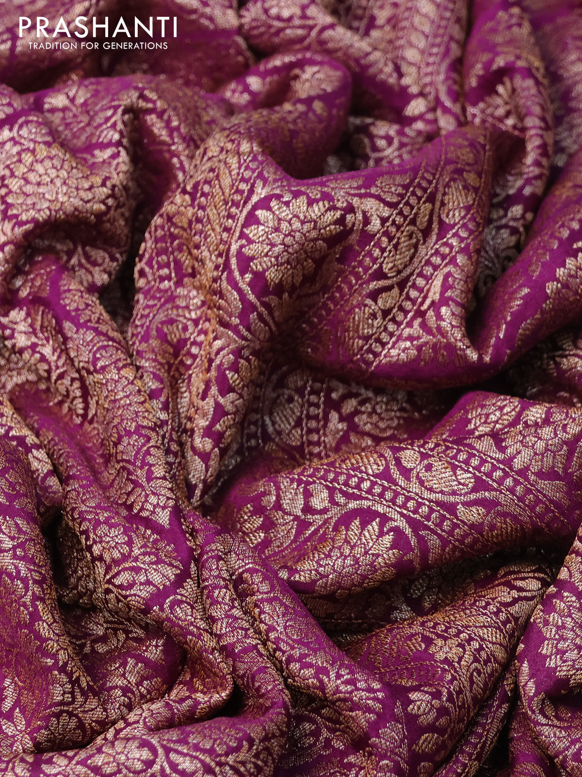 Banarasi crepe saree deep purple with allover thread & zari brocade weaves and woven border