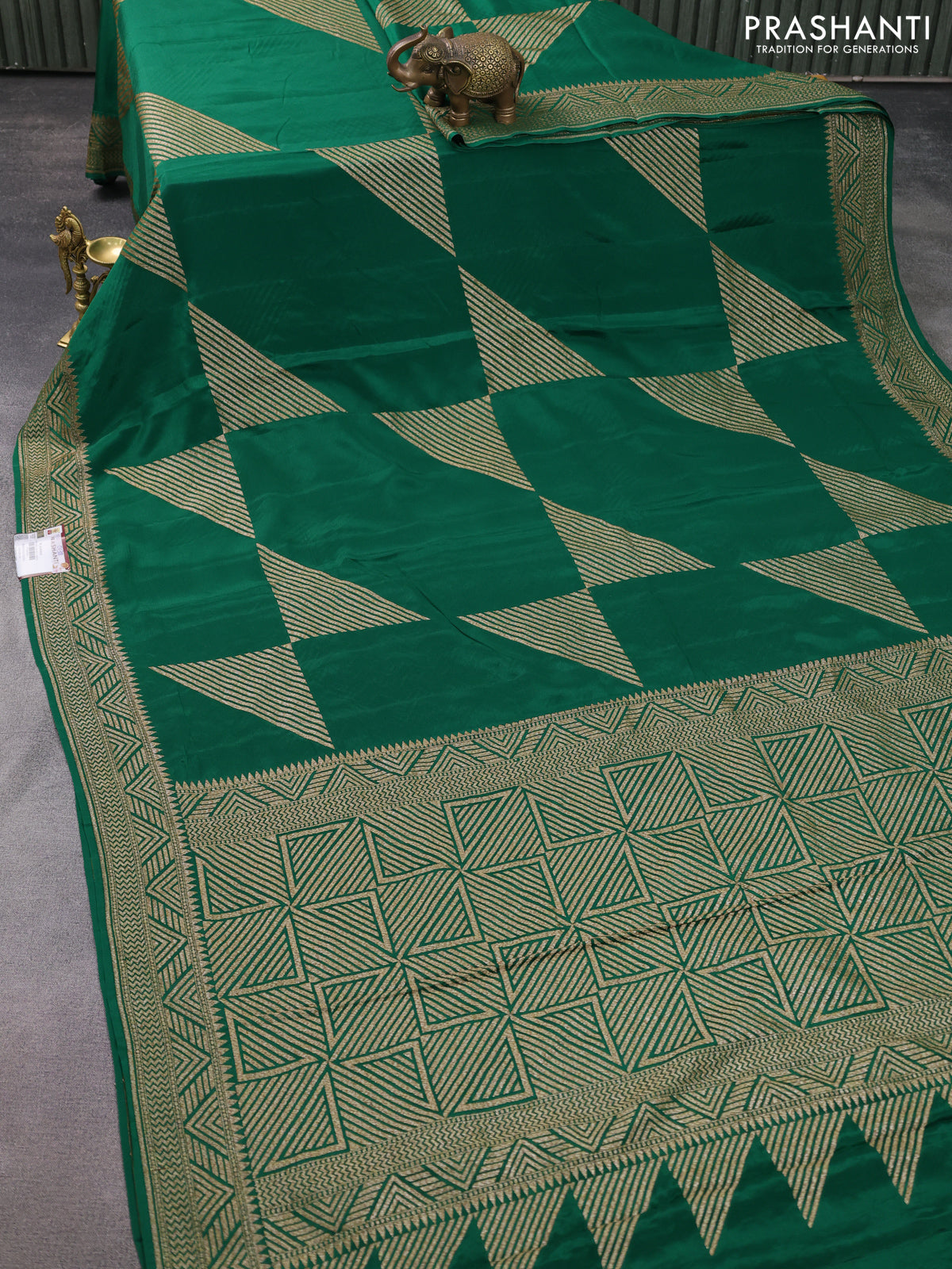 Banarasi crepe saree green with allover thread & zari geometric weaves and woven border