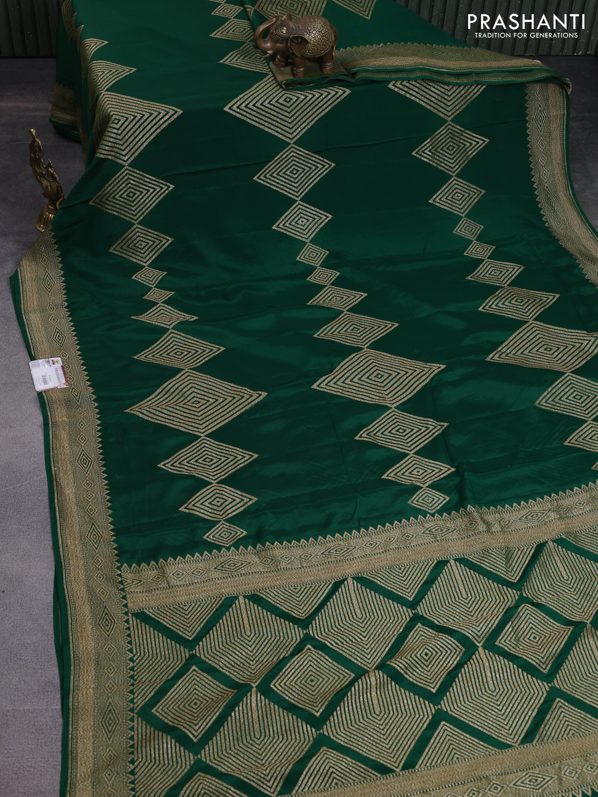Banarasi crepe saree green with allover thread & zari geometric weaves and woven border