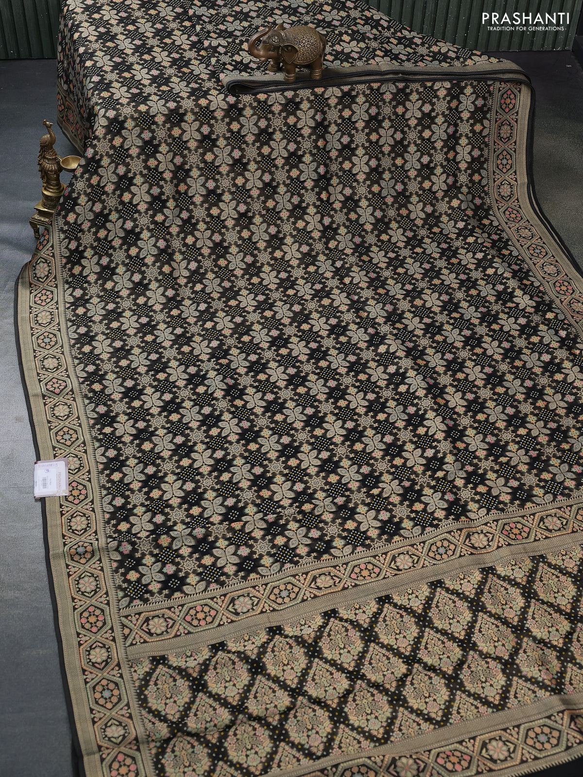 Banarasi georgette saree black with bandhani prints & mina weaves