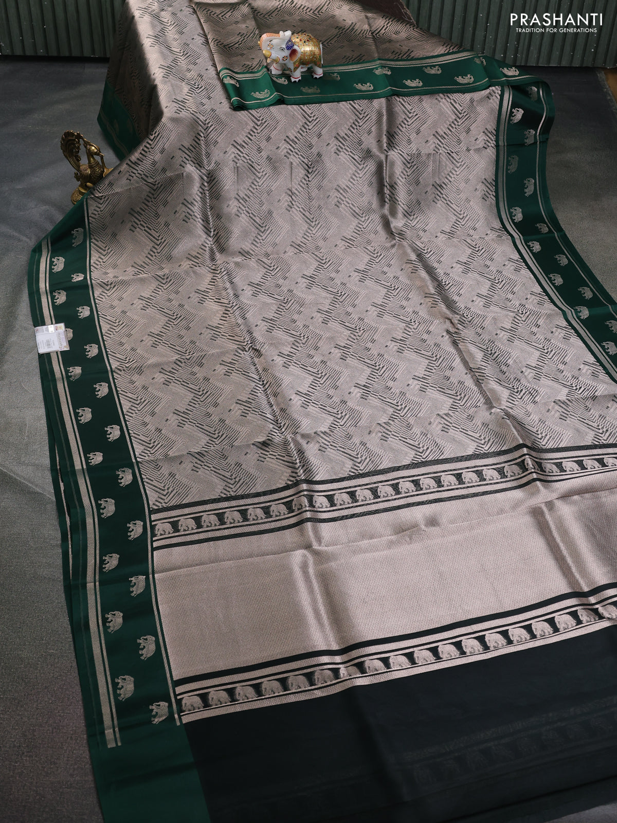 Banarasi katan silk saree green with allover silver zari woven brocade weaves and zari woven butta border