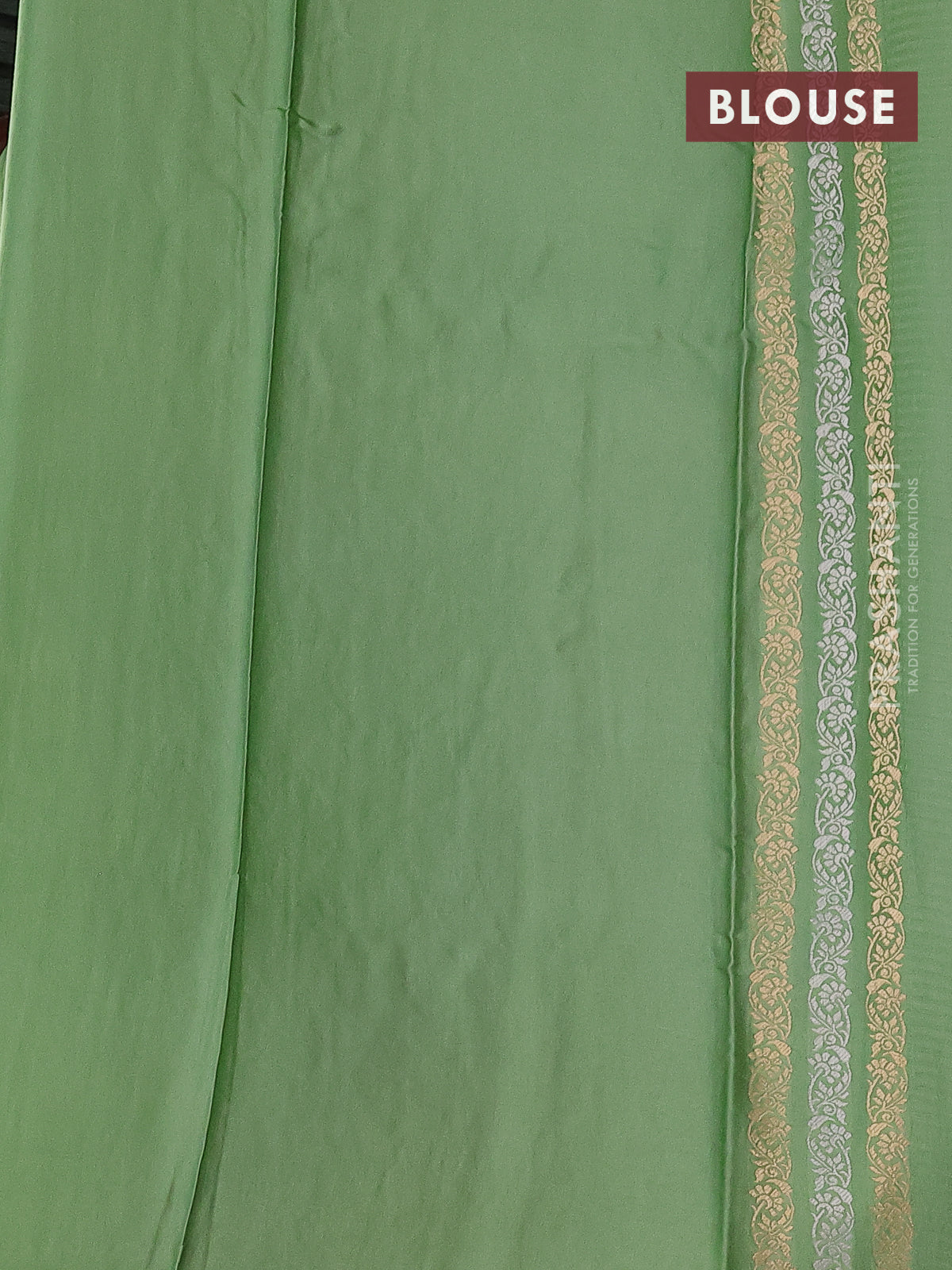 Banarasi mushru silk saree pastel green with allover stripes pattern & zari buttas and satin border