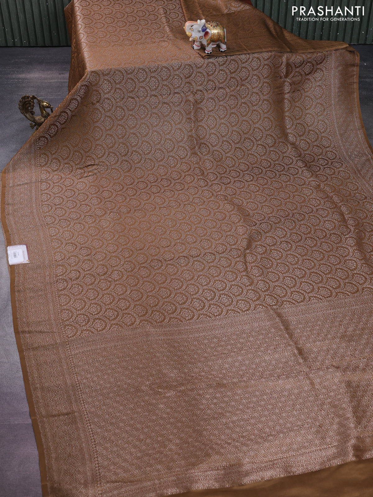 Banarasi semi crepe saree miltary green with allover thread & zari woven brocade weaves and woven border