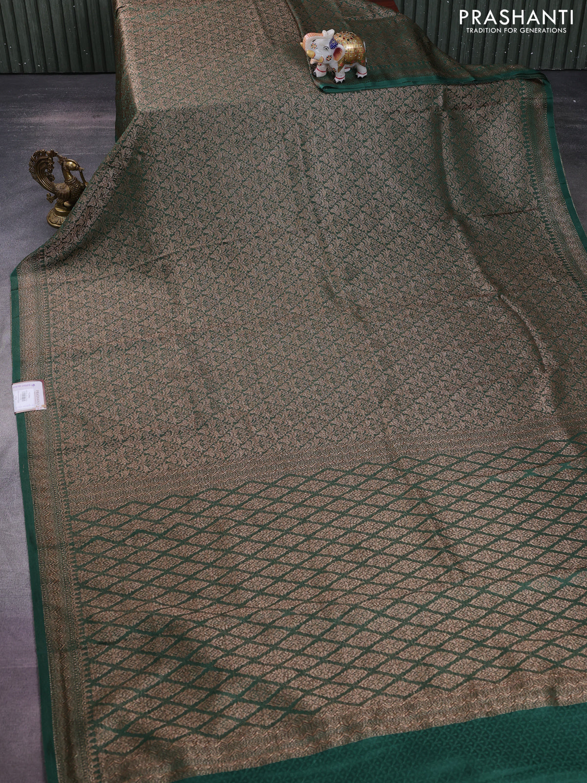 Banarasi semi crepe saree teal green with allover thread & zari woven brocade weaves and woven border