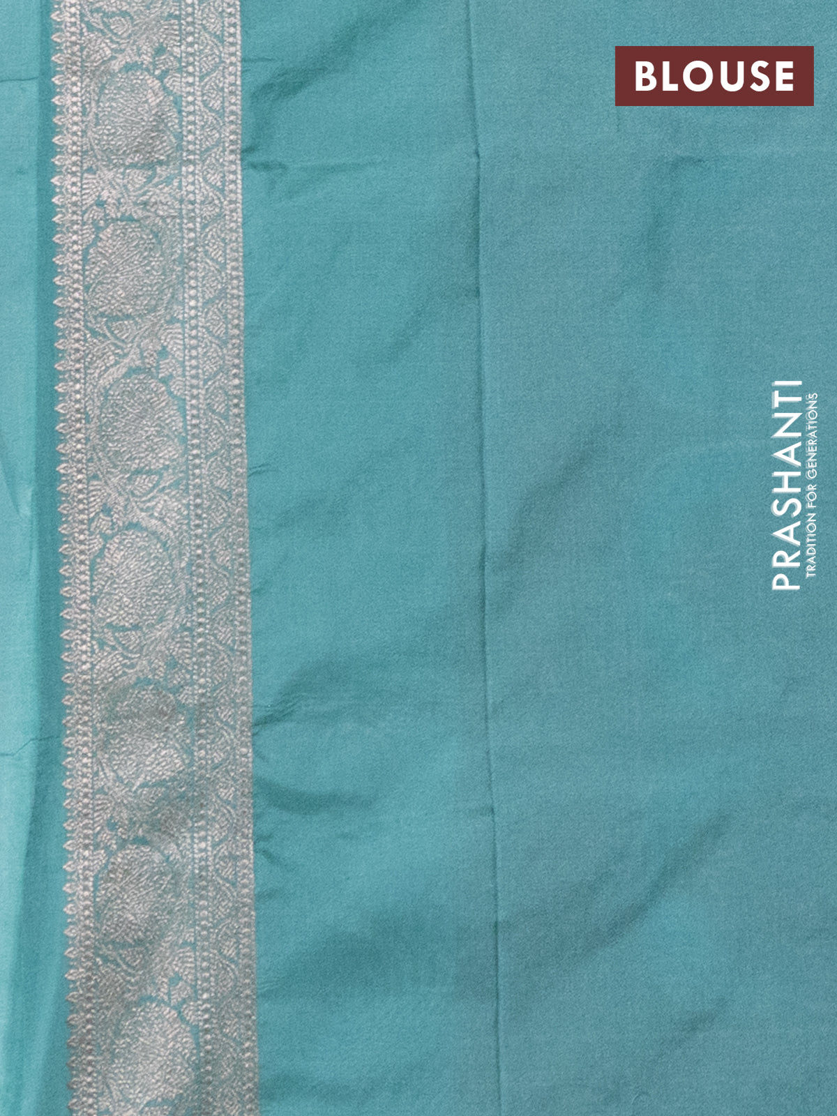 Banarasi semi katan saree teal blue with allover zari weaves and zari woven border
