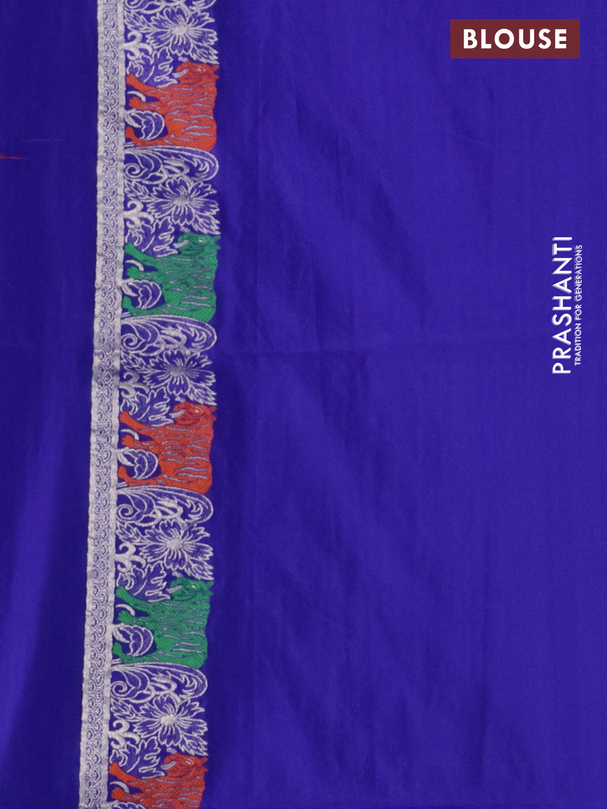 Banarasi semi katan silk saree blue with allover zari weaves and rich zari woven border