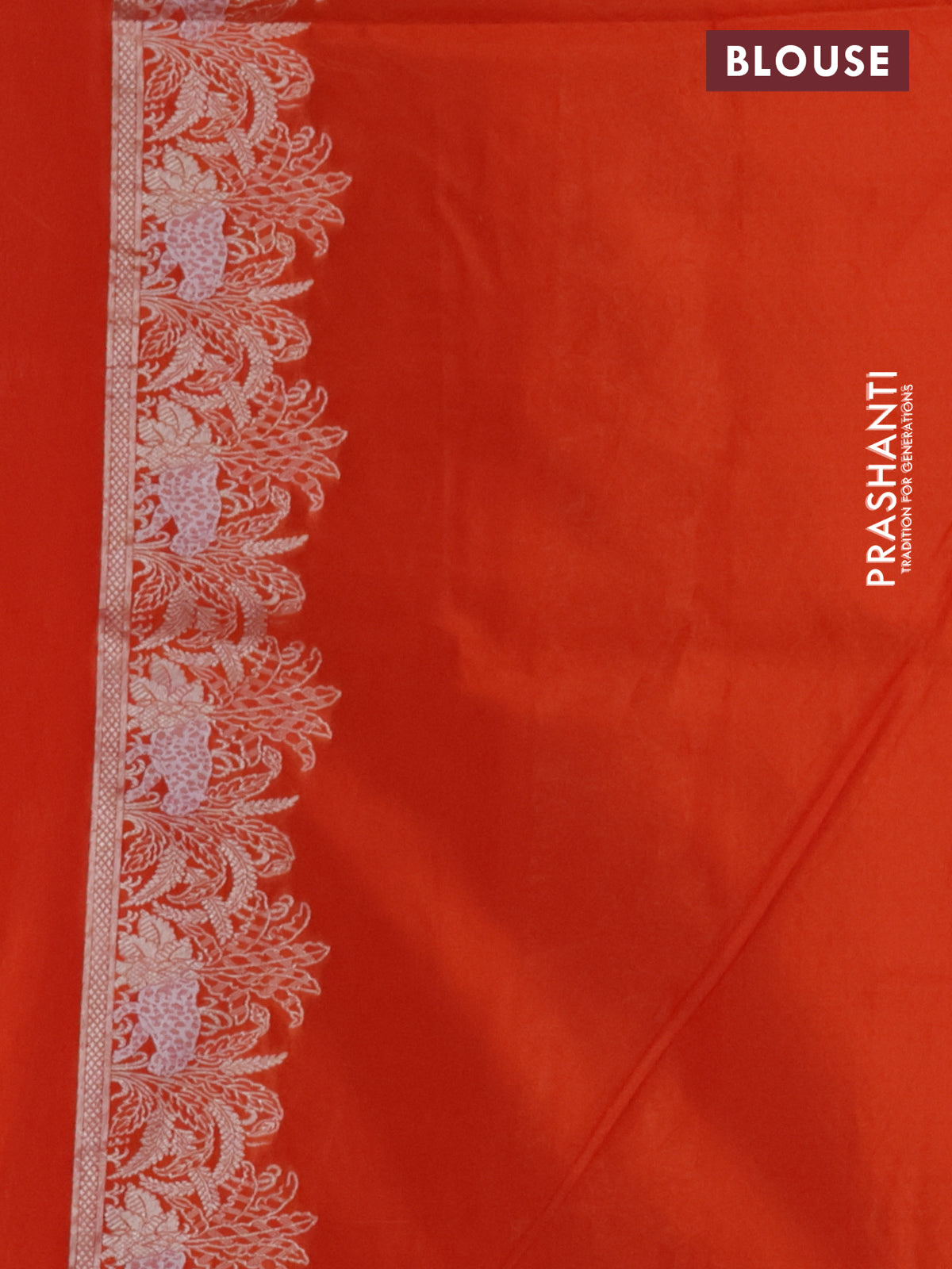 Banarasi semi katan silk saree orange with allover silver & gold zari weaves and zari woven border