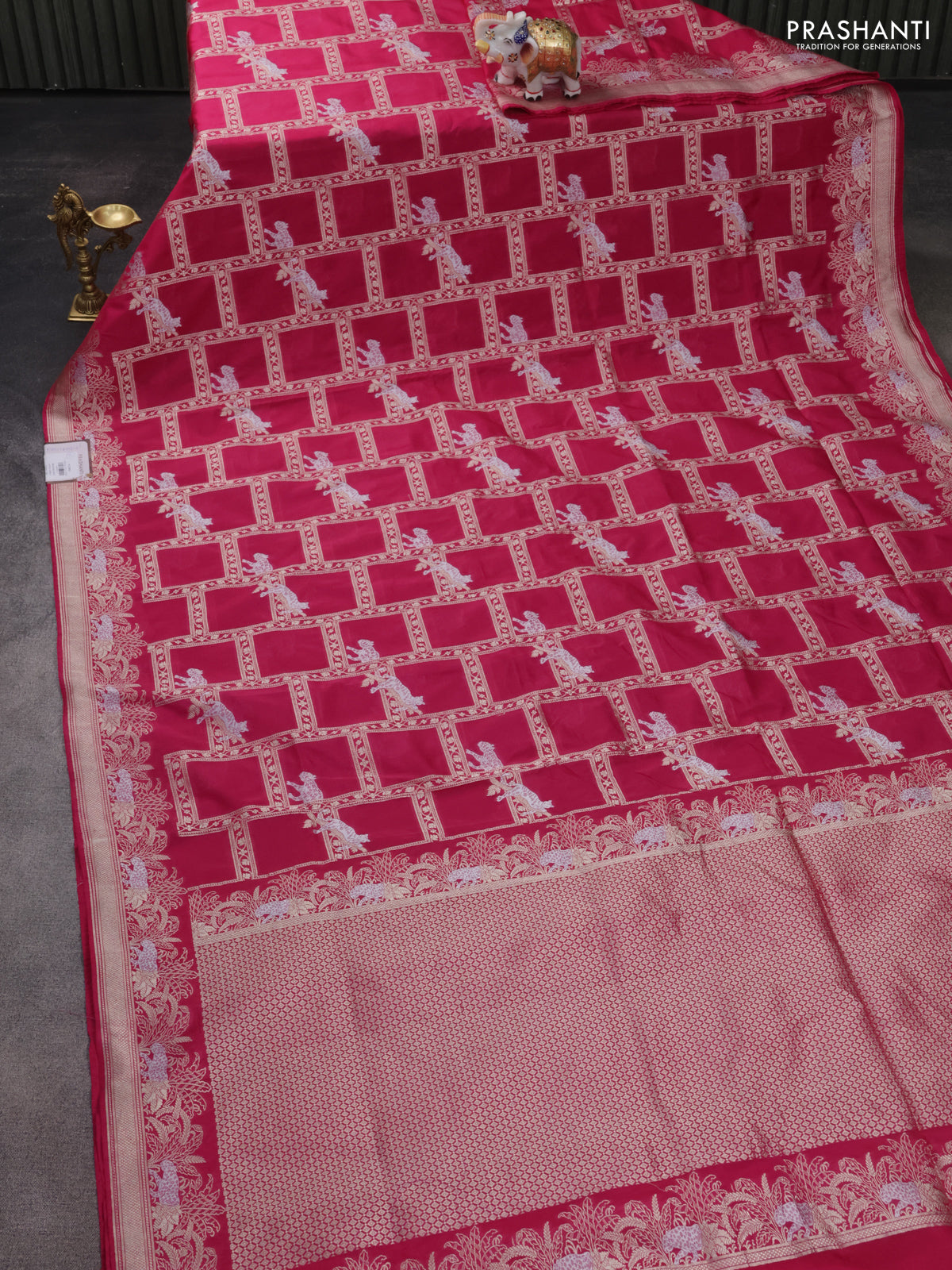 Banarasi semi katan silk saree pink with allover silver & gold zari weaves and zari woven border