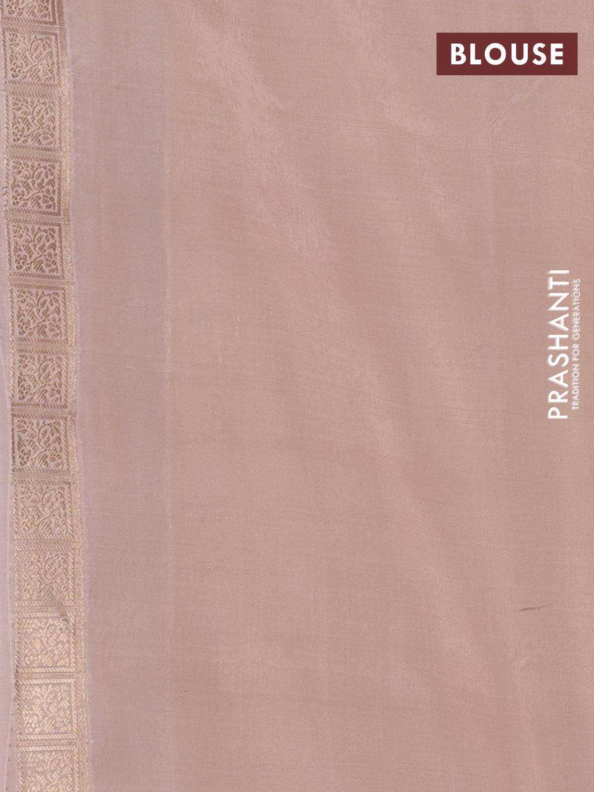 Banarasi tissue semi silk saree beige and pale orange with zari weaves & floral buttas and silver zari woven butta border