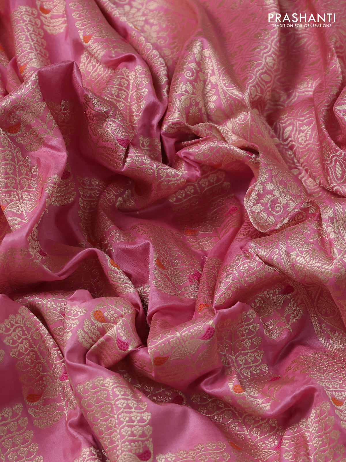 Banarasi uppada silk saree light pink with allover zari woven brocade weaves and zari woven border